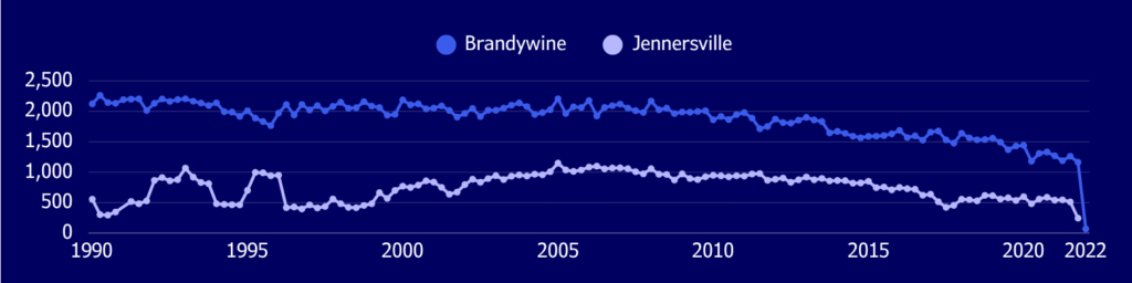 • 1990 – The first year of discharge data available for request from PHC4 for Brandywine.